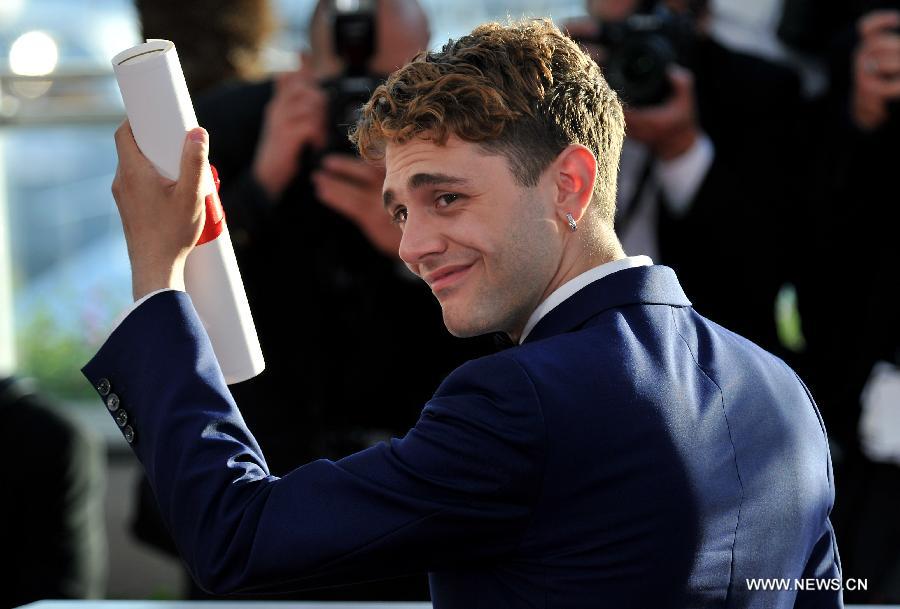 Director Xavier Dolan presents the Jury Prize of the 67th Cannes Film Festival for his film Mommy, in Cannes, France, May 24, 2014.(Xinhua/Chen Xiaowei)