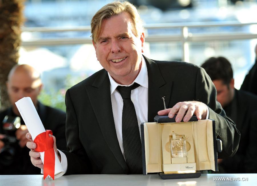 British actor Timothy Spall presents the Best Actor award of the 67th Cannes Film Festival for the film Mr. Turner, in Cannes, France, May 24, 2014.(Xinhua/Chen Xiaowei)