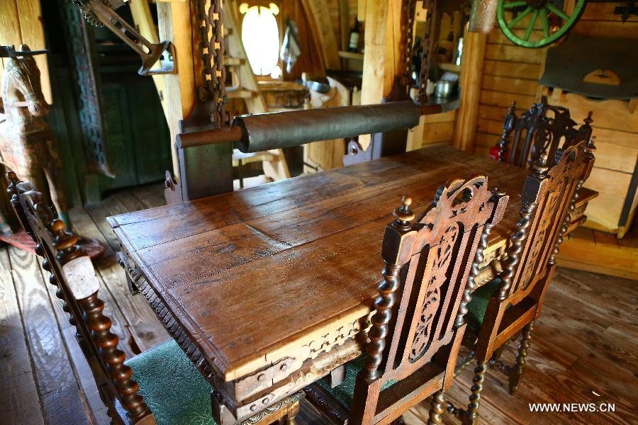 Photo taken on May 22, 2014 shows the decoration inside the Trojan Horse of the La Balad des Gnomes hotel near the town of Durbuy, Belgium. The Trojan Horse is a specially designed building of hotel La Balad des Gnomes in Belgium. (Xinhua/Gong Bing)