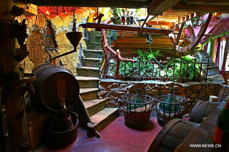 Photo taken on May 22, 2014 shows the decoration inside the La Balad des Gnomes hotel near the town of Durbuy, Belgium. The Trojan Horse is a specially designed building of hotel La Balad des Gnomes in Belgium. (Xinhua/Gong Bing)