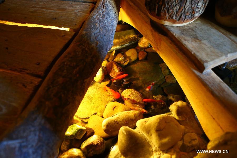 Photo taken on May 22, 2014 shows goldfish in the La Balad des Gnomes hotel near the town of Durbuy, Belgium. The Trojan Horse is a specially designed building of hotel La Balad des Gnomes in Belgium. (Xinhua/Gong Bing)