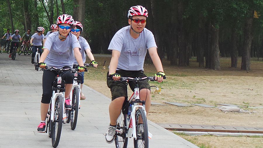 Participants ride in Beijing Yeya Lake National Wetland Park in Yanqing north of Beijing on May 24, 2014. (People’s Daily Online/Kong Defang)