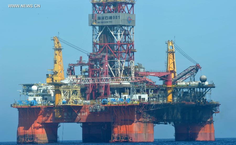Photo taken on May 17, 2014 shows the site of China's rig 981, which is 17 nautical miles away from Zhongjian Island, administrated by Sansha City, south China's Hainan Province. Rig 981 started the second stage of drilling operation on Tuesday in the South China Sea. (Xinhua/Zhao Yingquan)