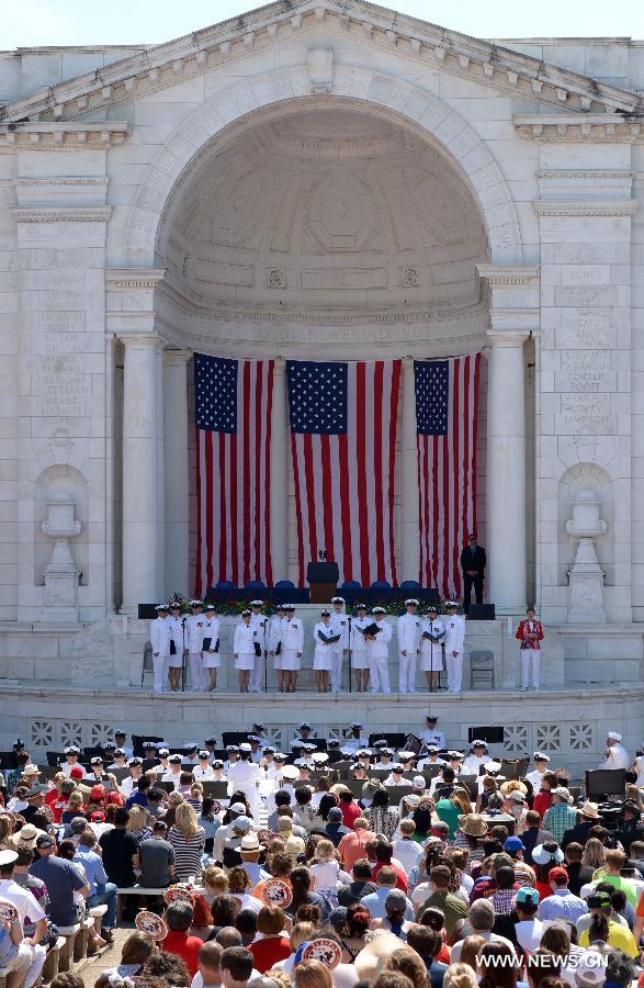 People attend a Memorial Day event at Arlington National Cemetery, outside Washington D.C., the United States, May 26, 2014. (Xinhua/Yin Bogu)