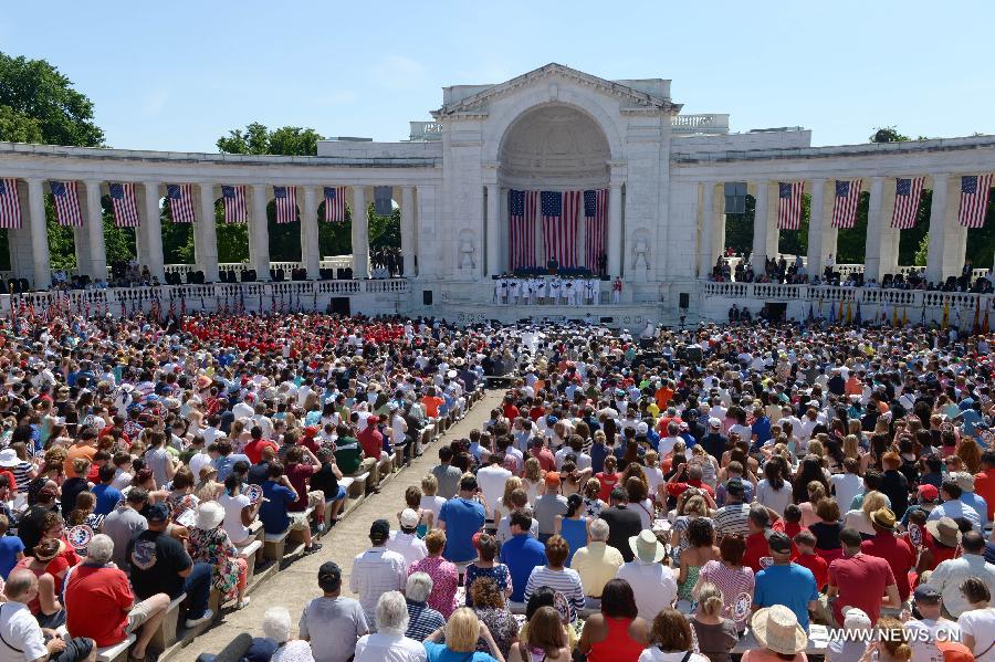 People attend a Memorial Day event at Arlington National Cemetery, outside Washington D.C., the United States, May 26, 2014. (Xinhua/Yin Bogu)