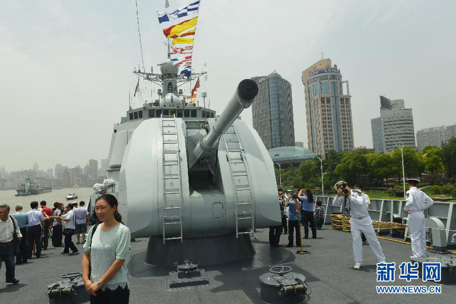 Visitors visit Chinese battleship Zhengzhou at a port in Shanghai on May 26, 2014. (Xinhua News Agency/Long Wei)