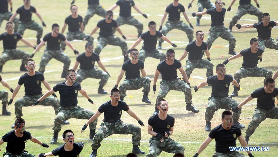 Policemen show fighting skills during an anti-terrorism drill in Shaoxing, east China's Zhejiang Province, May 27, 2014. Police of Zhejiang Province held an anti-terror drill on Tuesday.(Xinhua/Wang Dingchang)