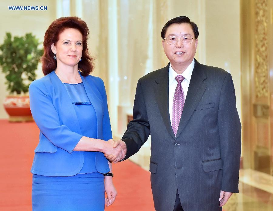 Zhang, chairman of the Standing Committee of the National People's Congress (NPC), hailed the progress of China-Latvia ties since the establishment of diplomatic ties over 20 years ago, citing stable political connections and fruitful cooperation in such areas as trade, culture, education and technology.