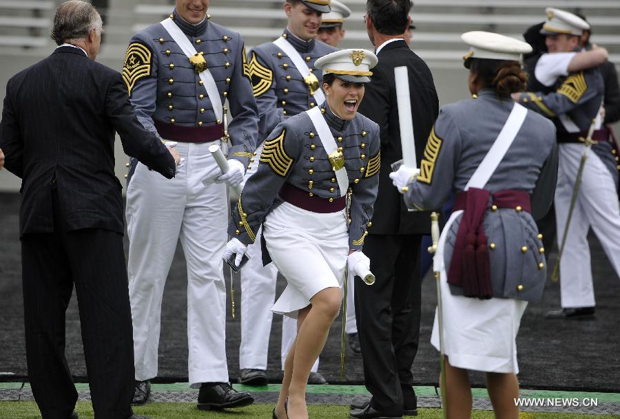 Cadets celebrate during the graduation ceremony at the United States Military Academy at West Point, New York, the United States, on May 28, 2014. (Xinhua/Wang Lei)