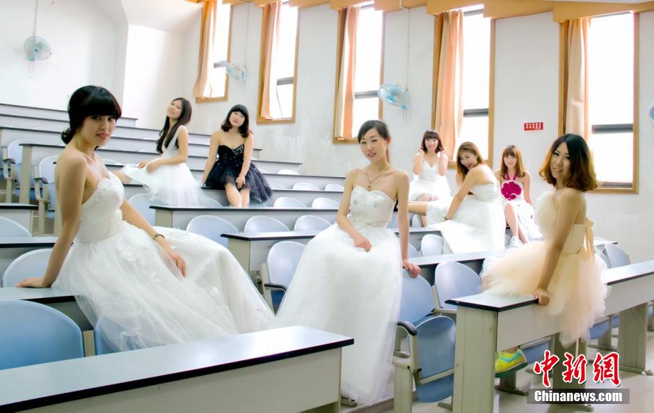 College students from Southwest University for Nationalities pose for group photos to mark their graduation on May 28, 2014. (CNS/Huang Guobing)