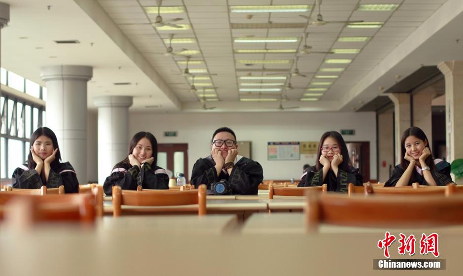 College students from Southwest University for Nationalities pose for group photos to mark their graduation on May 28, 2014. (CNS/Huang Song Zhe)