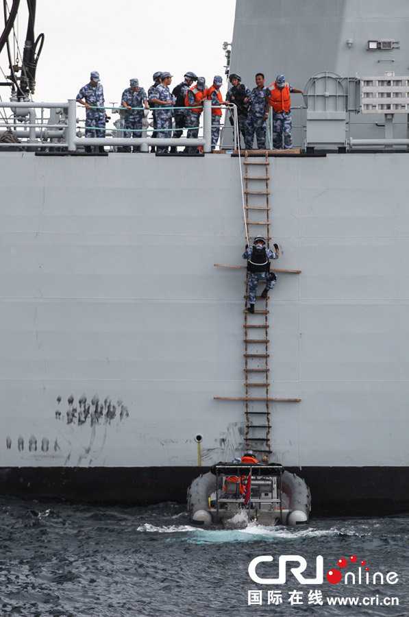 Chinese and Nigerian navies launch an anti-piracy drill in the Gulf of Guinea on May 27, 2014. (CRI Online/Li Jin)
