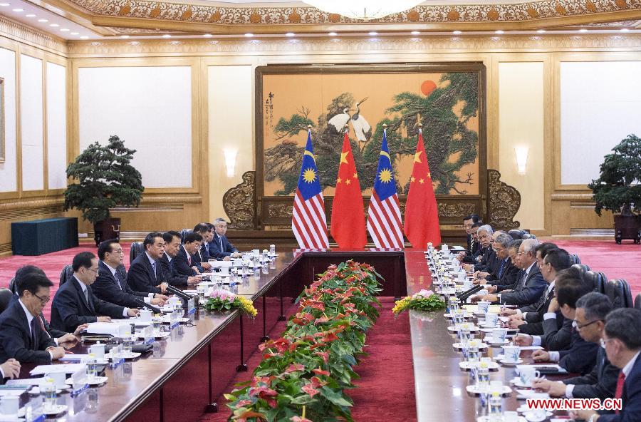 Chinese Premier Li Keqiang holds talks with Malaysian Prime Minister Najib Razak in Beijing, capital of China, May 29, 2014. (Xinhua/Wang Ye) |
