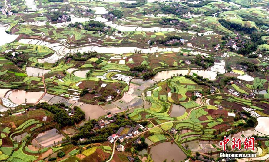 Beautiful scenery of Chengdu, Sichuan province in early summer, a bird's view. (China News Service/Liu Zhongjun)