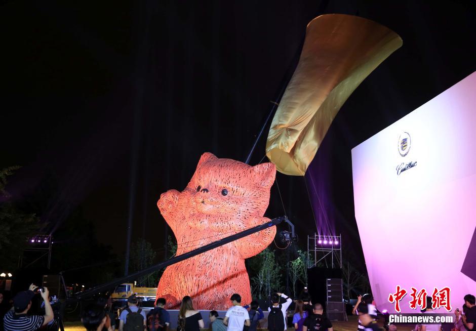 A giant pink cat, which is one of the latest creations from Holland designer Florentijn Hofman, is displayed in Shanghai, east China, May 30, 2014. Hofman is well-known for his creation "Giant Rubber Duck." (Photo Source: chinanews.com)