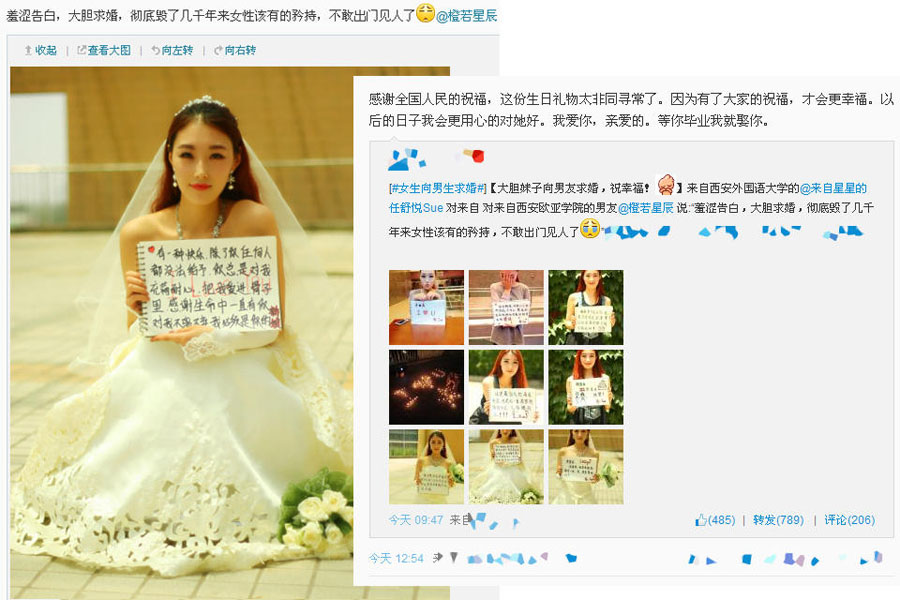 College girl in wedding dress proposes to boyfriend on Weibo (9)