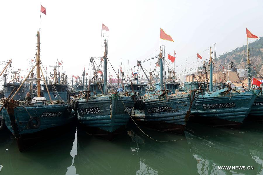 Fishing boats anchor at a port in Qingdao, east China's Shandong Province, May 31, 2014. The three-month-long fishing off season of the Bohai Sea, the Yellow Sea and East China Sea would start on June 1. (Xinhua/Yu Fangping)