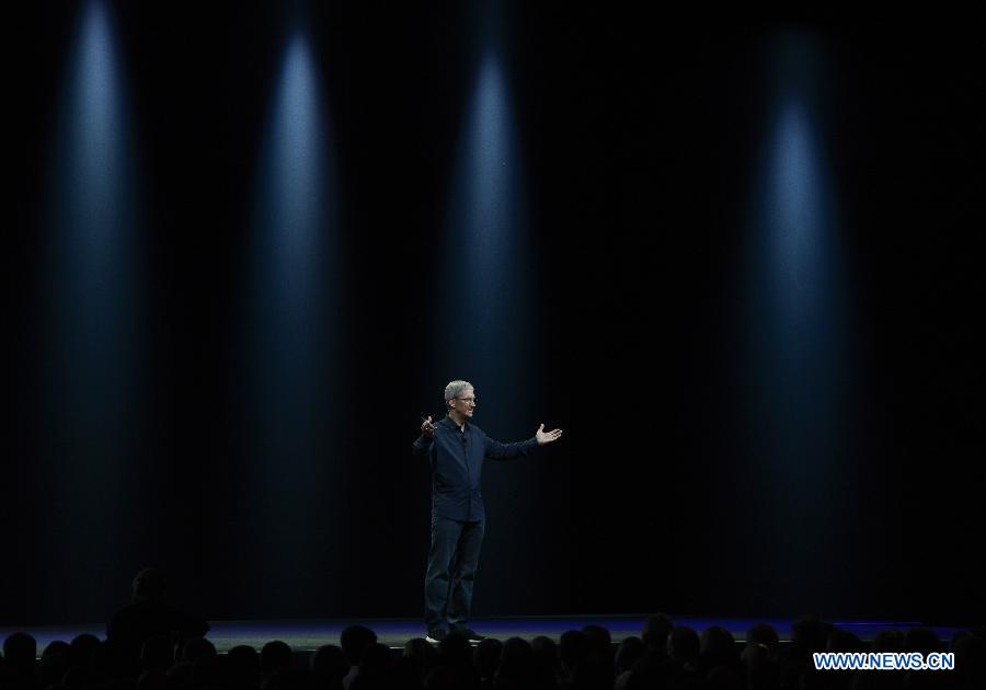 Apple's Chief Executive Tim Cook speaks on the company's World Wide Developers Conference (WWDC2014) in San Francisco, the United States, June 2, 2014. Apple kicked off its developers conference on Monday. (Xinhua)