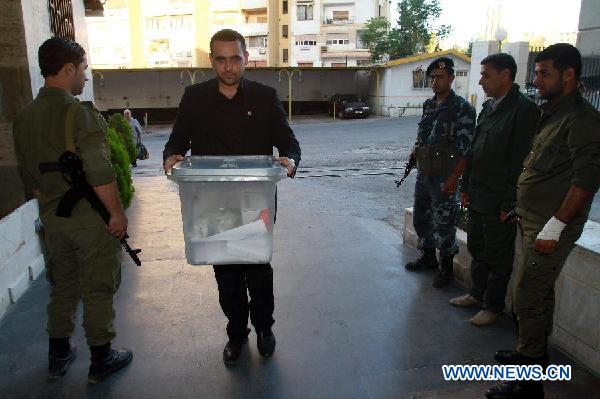Tuesday's poll, which lasts from 7 a.m. to 7 p.m. local time, takes place at roughly all governmental establishments and ministries and also in the capital's hotels and booths set up by the government in every alley in Damascus to facilitate the voting.