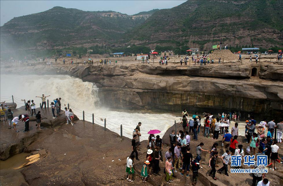 As the warm weather has picked up recently, a surge of water has fattened the roaring downpour at Hukou Falls, which sits on the Yellow River at the junction between Yichuan county, Shaanxi province, and Ji county, Shanxi province. At this point, the Yellow River's waters dash down in torrents, wetting the throngs of visitors that come to see the falls in clouds of mist. (Photo/Xinhua)