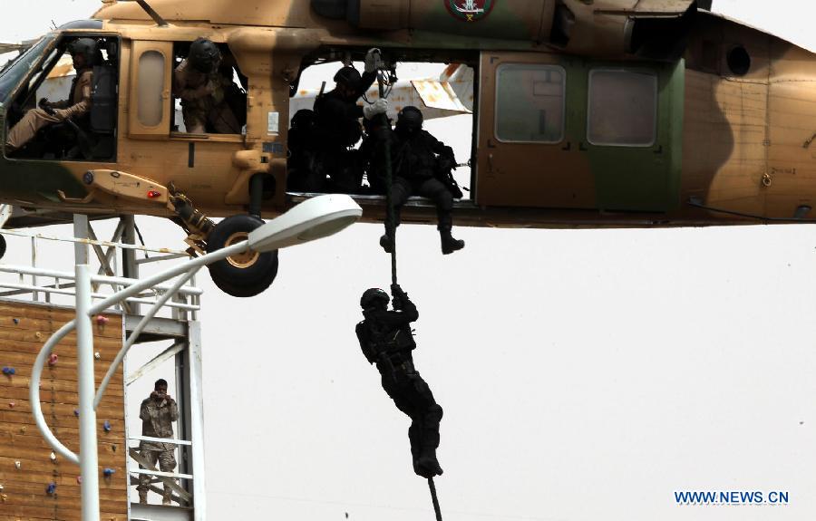 Special operations forces participate in the "Eager Lion" military drill at the Gulf of Aqaba, some 330 kilometers south of Amman, Jordan, June 5, 2014. The Jordan-hosted "Eager Lion" international military drill with the participation of 22 countries seeks to strengthen the skills of the Jordanian army and enhance cooperation, the army said.(Xinhua/Mohammad Abu Ghosh) |