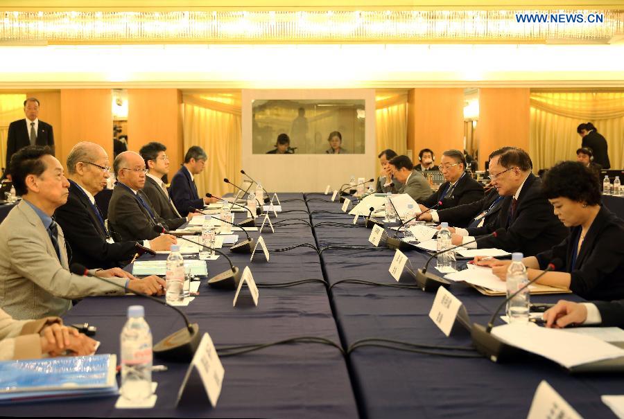 Photo taken on June 5, 2014 shows a meeting of the 21st Century Committee for China-Japan Friendship Committee, in Nagasaki, Japan, on June 5, 2014. (Xinhua/Liu Tian)