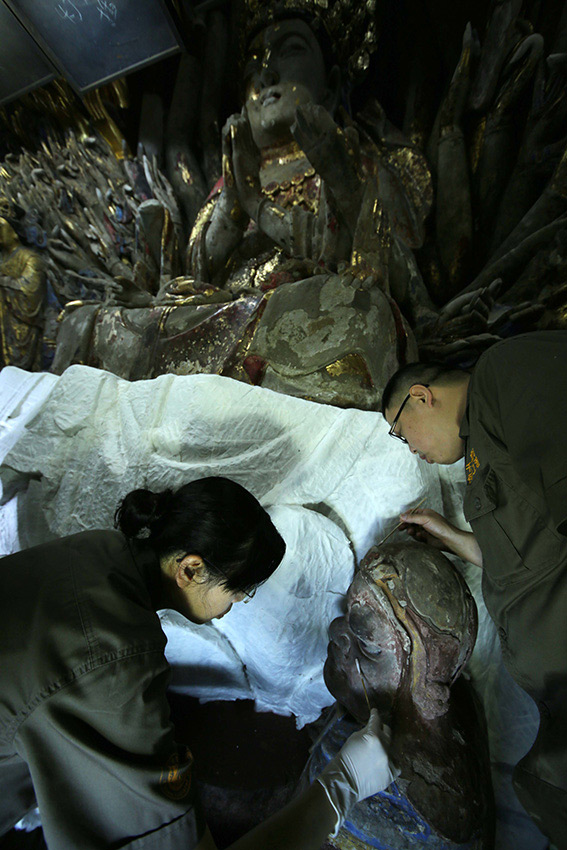 Rainy weather hinders repair of the Thousand-hand Bodhisattva (5)