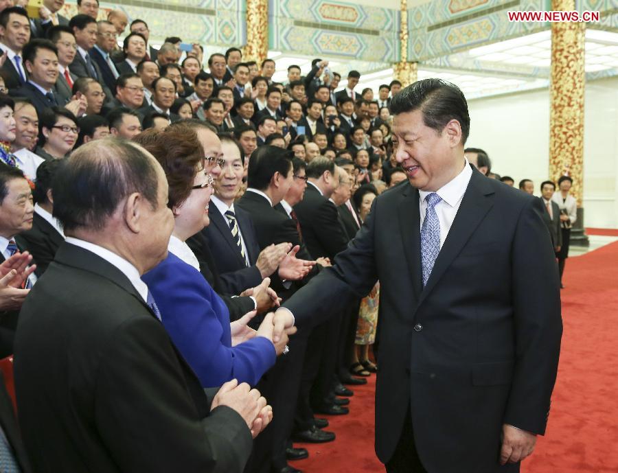 Chinese President Xi Jinping (R), also General Secretary of the Communist Party of China (CPC) Central Committee, meets with representatives attending the seventh Conference of Friendship of Overseas Chinese Associations in Beijing, capital of China, June 6, 2014. (Xinhua/Lan Hongguang) |