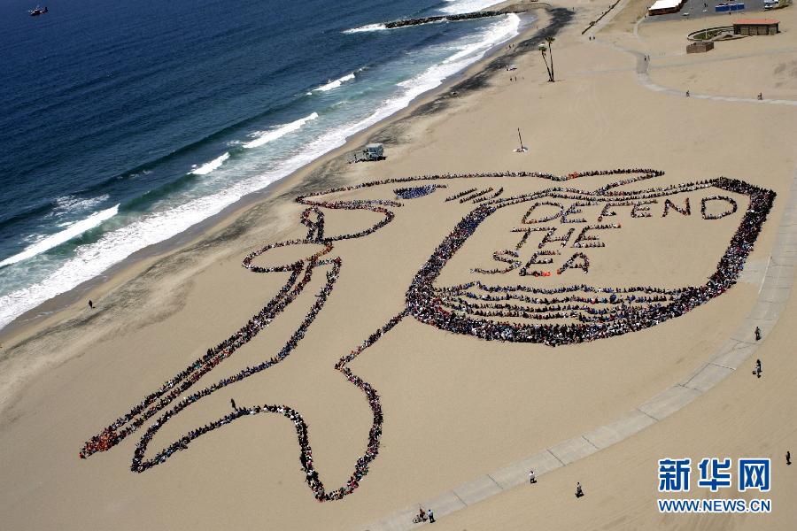 People line up to form letters and patterns on a beach in Los Angeles to advocate for sea protection, June 7, 2012. World Oceans Day was first introduced in 1992 and was officially recognized by the United Nations (UN) in 2008. (Photo: Xinhua/Reuters) |