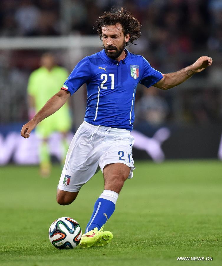 Andrea Pirlo of Italy competes during a friendly match against Luxembourg in Perugia, Italy, on June 4, 2014. The match ended with a 1-1 draw. (Xinhua/Alberto Lingria)