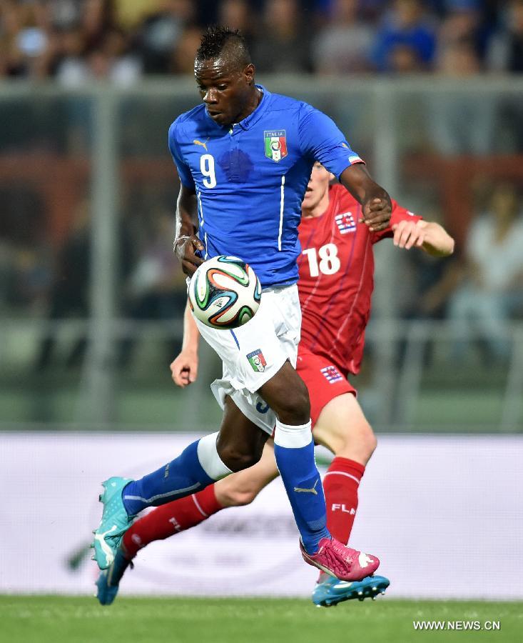 Mario Balotelli of Italy controls the ball during a friendly match against Luxembourg in Perugia, Italy, on June 4, 2014. The match ended with a 1-1 draw. (Xinhua/Alberto Lingria)