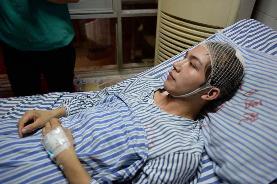 Liu lies in bed in the hospital June 7, 2014. (Photo/Xinhua)