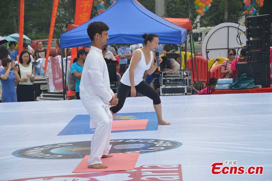 A total of 505 pregnant women set a new Guinness World Record on yoga at a park in Changsha of central China's Hunan province on June 8, 2014. The 505 participants practiced yoga for 37 minutes and 28 seconds, breaking the record in 2013 in Shenzhen which involved 423 pregnant women. According to Guinness certification officer Cheng Dong, to set the new record, all the participants are expected to be over 12 weeks in pregnancy with medical certificates and their challenge lasts no less than 30 minutes. (Photo/China News Service) |