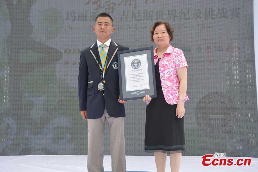 A total of 505 pregnant women set a new Guinness World Record on yoga at a park in Changsha of central China's Hunan province on June 8, 2014. The 505 participants practiced yoga for 37 minutes and 28 seconds, breaking the record in 2013 in Shenzhen which involved 423 pregnant women. According to Guinness certification officer Cheng Dong, to set the new record, all the participants are expected to be over 12 weeks in pregnancy with medical certificates and their challenge lasts no less than 30 minutes. (Photo/China News Service) |