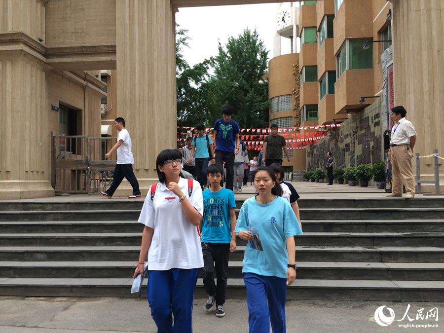 Students leave the exam venue after finishing the National College Entrance Exam (NCEE) in Beijing on June 8, 2014. (People’s Daily Online/ Wang Xin)