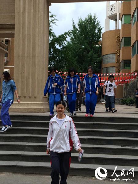 Students leave the exam venue after finishing the National College Entrance Exam (NCEE) in Beijing on June 8, 2014. (People’s Daily Online/ Wang Xin)