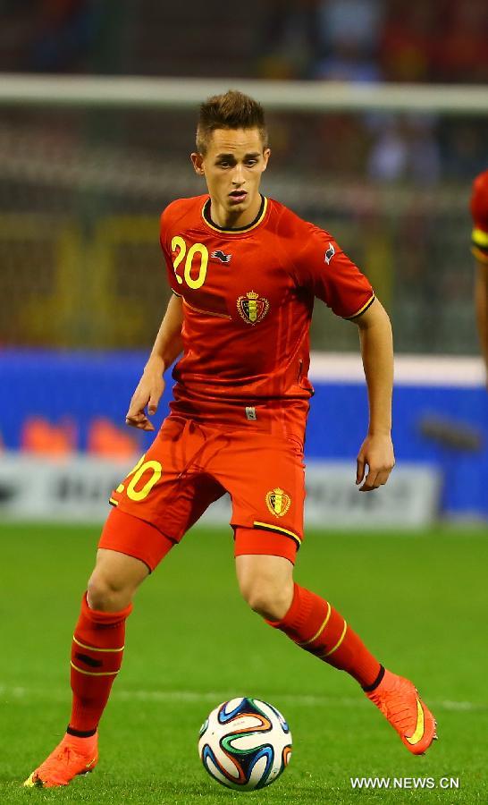 Belgium's Adnan Januzaj controls the ball during a friendly soccer match against Tunisia in Brussels, on June 7, 2014. Belgium won 1-0. (Xinhua/Gong Bing)