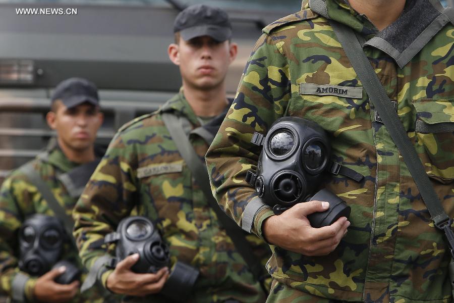 Members of armed forces participate in operational training for FIFA World Cup in Brasilia, Brazil, June 8, 2014. About 3,900 Army, Navy and Air Force Soldiers will take part in the security operations during the World Cup in Brazil. (Xinhua/Dida Sampaio/Estadao Conteudo/Agencia Estado) |