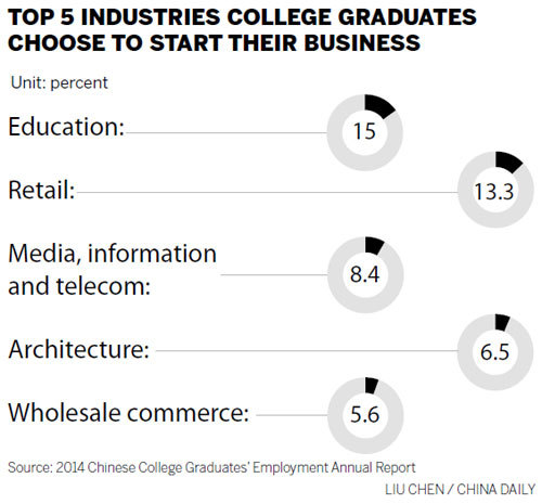 Feng Lijuan, chief consultant at 51job.com, a major recruiting website in China, said starting a business in these fields is comparatively easier and college graduates have a bigger chance of keeping their businesses going.