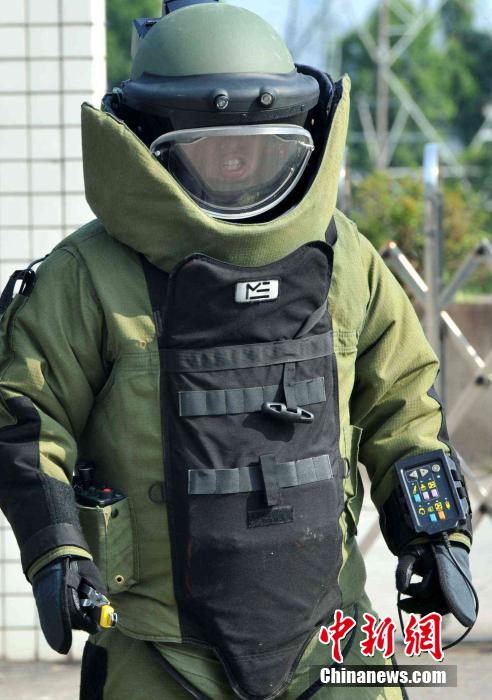 A SWAT team conducts anti-terror drill in Fuzhou, southeast China’s Fujian province on June 9, 2014. They demonstrated skills including emergency response, explosive handling, bomb disposal, search and shooting. Established in 2005, the team has 281 members with average age of 26.3 years old. (CNS Photo/Wang Dongming)