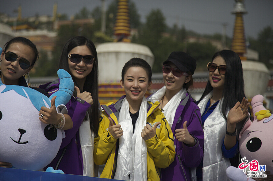 Chinese billiards star Pan Xiaoting attended the blessing ceremony of the first Qinghai Lake Electric Vehicle International Challenge Competition on June 9 in Xining. [Photo by Wu Wenda / China.org.cn]