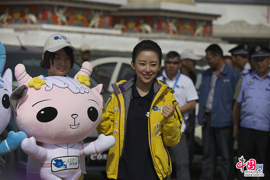The blessing ceremony of the first Qinghai Lake Electric Vehicle International Challenge Competition was held on June 9 in Xining, capital of Qinghai Province. Pan Xiaoting, a well-known Chinese billiards star, attended the event as the image ambassador of the competition. The challenge competition, which will be held June 8-13 in Xining, is organized by Qinghai provincial government, and sponsored by Qinghai Lake Electric Vehicle International Challenge Competition company and Beijing Automotive Group. [Photo by Wu Wenda / China.org.cn] |