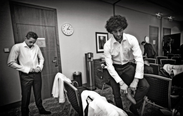 Getting close to flag-raising soldiers at the YOG