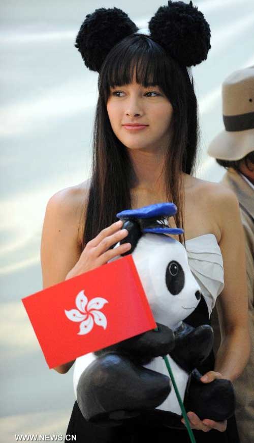 A model poses with a paper panda at Hong Kong International Airport in Hong Kong, South China, June 9, 2014. The installation arrived in the city on Monday, launching the month-long "1600 Pandas World Tour in Hong Kong: Creativity meets Conservation" organized by a local art organiser, according to the official press release. [Photo/Xinhua] |