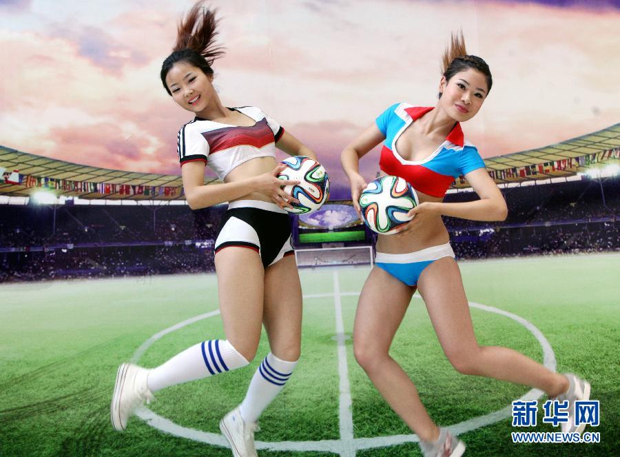 Contestants show in the "World Cup Yantai football babes" activity, June 8, 2014. Over 60 contestants participate in the selection. Winners will do promotional activities during the World Cup. (Xinhua/Shen Jizhong)