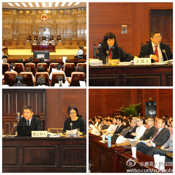 For the first time ever, foreign envoys, foreign journalists, consultants and others observe a session of the Supreme People's Court of China in Beijing on Wednesday, June 11, 2014. The hearing featured a complaint from Sino-environment Technology Group Limited against Thumb Environmental Group related to a funding dispute involving shareholders. [Photo: Weibo.com]