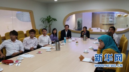 SMITC Xia Baowen (5th, L) talks with representatives of Malaysia halal industry development department and Port Klang Free Zone. (Xinhuanet Photo)