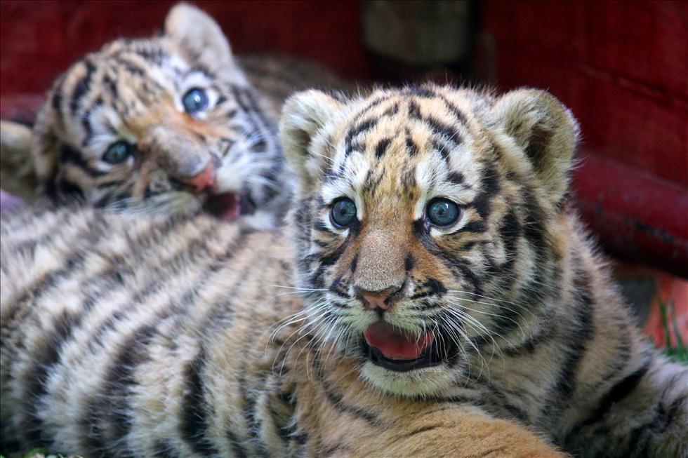 Two newly born Siberian tiger cubs pose for photos at a zoo in Shiyan City, central China's Hubei Province on June 10, 2014.(Zhang Xinjun/Xinhua News Agency)