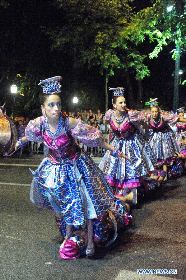 Dancers perform during the Saint Anthony festivities in Lisbon June 12, 2014. Every year, people in Lisbon celebrate the festivities of the Day of Saint Anthony, the city's patron saint. (Xinhua/Zhang Liyun)