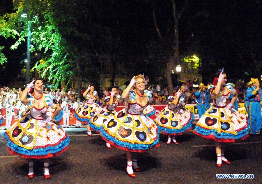 Dancers perform during the Saint Anthony festivities in Lisbon June 12, 2014. Every year, people in Lisbon celebrate the festivities of the Day of Saint Anthony, the city's patron saint. (Xinhua/Zhang Liyun)